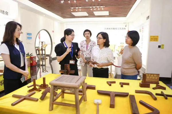 调研组来到新会古典家具城,了解古典家具行业商圈妇联的建设规模、运行情况和服务行业妇女情况。林露华强调,各级妇联要深入贯彻落实《全国妇联关于推进新经济组织、新社会组织、新就业群体妇联组织全覆盖的意见》要求,主动围绕发展大局、融入党建引领基层社会治理,通过单独建立、行业统建、区域联建、纳入村(社区)妇联组织等方式,实现“三新”领域妇联组织全覆盖。