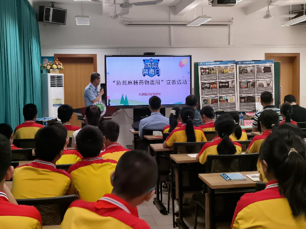 仪式结束后,法治副校长开展禁毒宣讲,向全体师生们重点讲解了滥用麻精药品的危害、新型毒品的伪装以及如何防范毒品等知识,告诫学生要认真学习毒品知识,不盲目猎奇,不模仿成年人的不良习惯,养成健康文明的生活习惯。