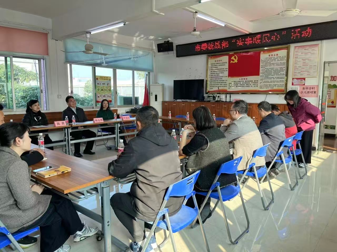 活动中,慰问组细致了解了困难群众家庭生活、身体近况,耐心倾听群众诉求与建议,并为他们送上礼品和新年祝福,将党的温暖与关怀送到群众心坎上。慰问组还为一名旧轮椅损坏的困难群众专门定制了加厚加宽的新轮椅。收到这份“量身定制”的关怀,慰问对象激动地说:“党和政府一直惦记着我们,这份温暖太实在了,太及时了,非常感谢!” 慰问走访结束后,慰问组与东环沙村“两委”班子、党员代表召开“化解纠纷·促进和谐”专题座谈会。会上,东环沙村书记吴焕荣详细汇报了村“两委”换届工作推进情况;韩强同志结合镇村实际,对后续民生保障、基层治理等工作提出要求;韩志勇同志作总结讲话,强调要持续深化“我为群众办实事”实践活动,以精准帮扶、多元共治助力乡村和谐发展。 座谈会后,现场举行了简单而庄重的东环沙村党建宣传栏建设支持捐赠仪式。市委统战部以实际行动助力基层党建阵地升级,进一步夯实乡村治理党建根基。 此外,慰问组还积极动员党员志愿者开展“乡村清洁日”志愿服务活动。志愿者们分工协作,重点对村内巷道、公共区域的卫生死角进行全面清扫,以“党建红”引领“环境美”,切实改善村民居住环境,让暖民心行动延伸到乡村治理的“神经末梢”。