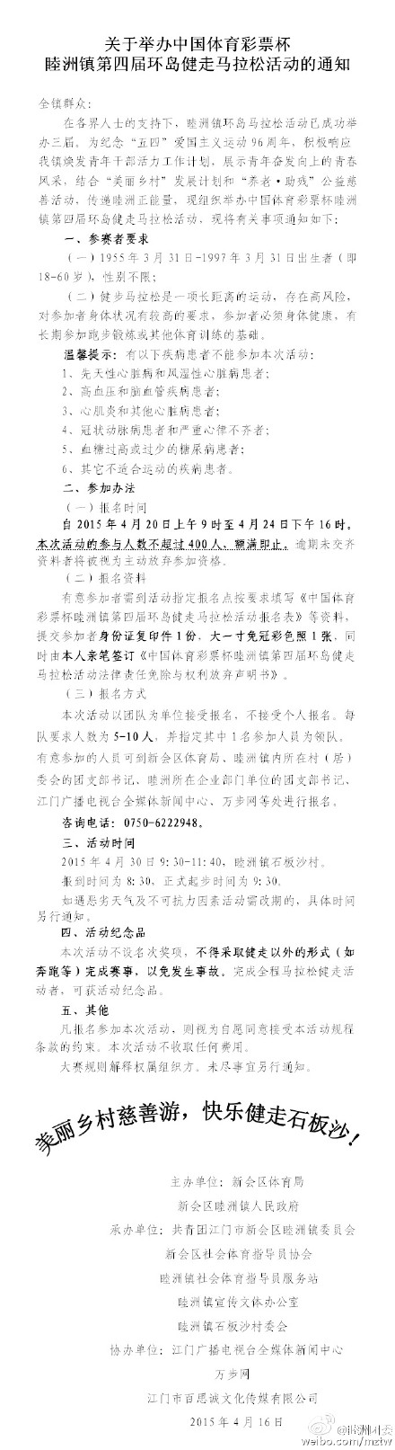 环岛健走马拉松活动的通知