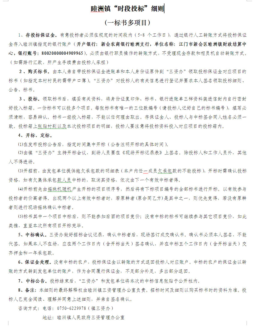 睦洲镇时段投标细则
