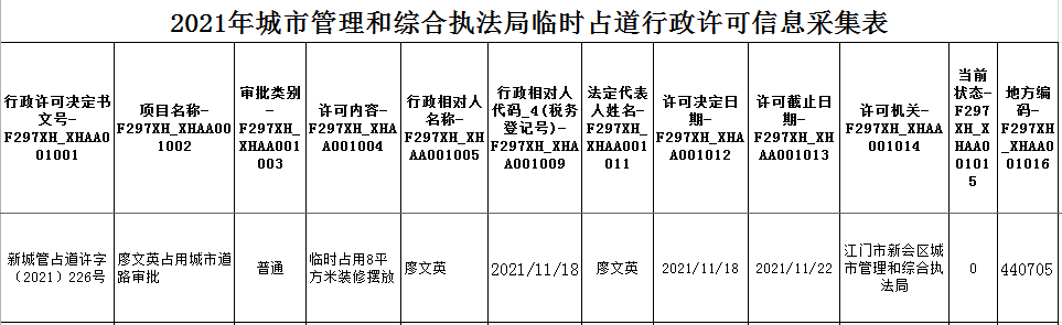 11.19临时占道行政许可信息