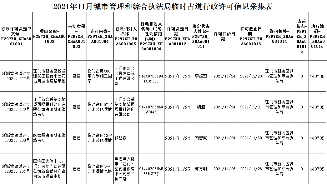 11.26临时占道行政许可信息.xls
