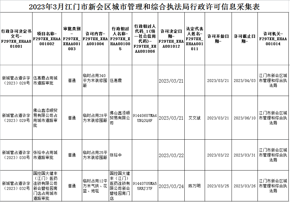 3.24江门市燕雨直播 城市管理和综合执法局行政许可信息.xls