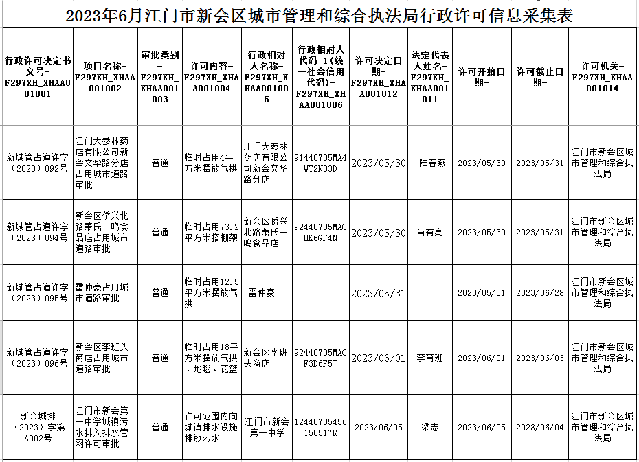 6.6江门市燕雨直播 城市管理和综合执法局行政许可信息.xls