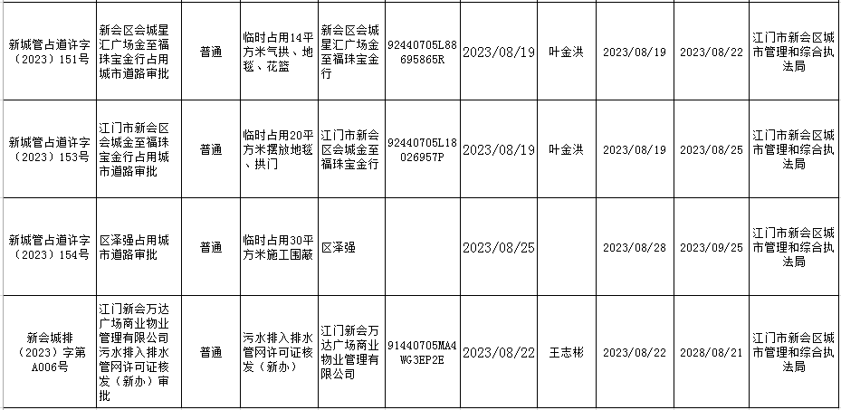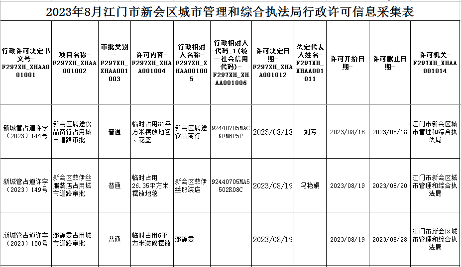 8.25江门市燕雨直播 城市管理和综合执法局行政许可信息.xls