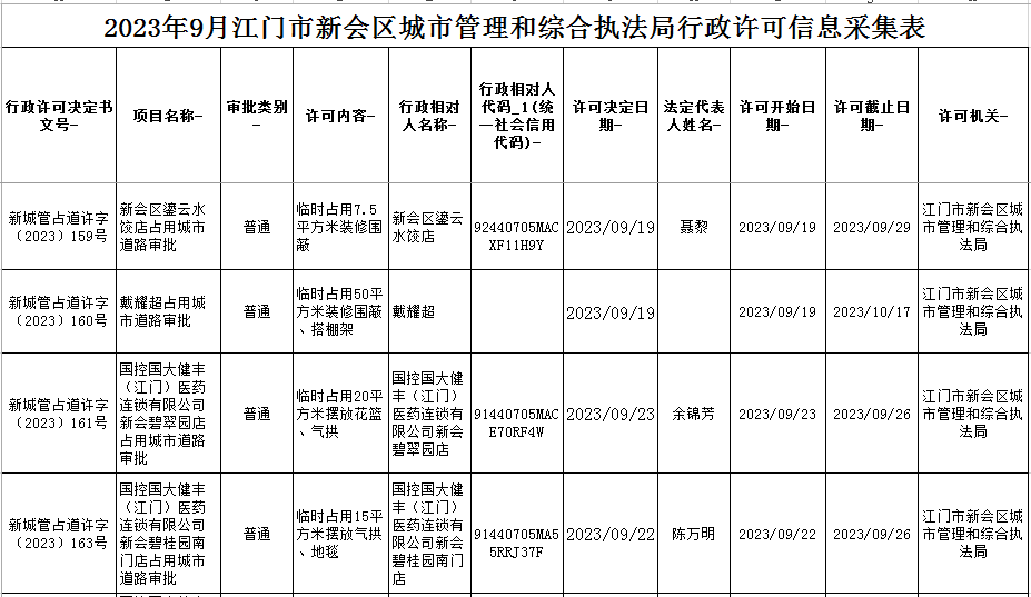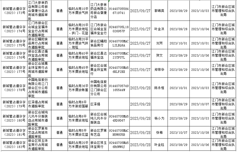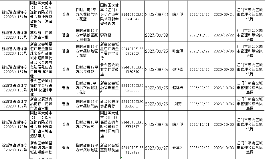 2023.9.28江门市燕雨直播 城市管理和综合执法局行政许可信息.xls