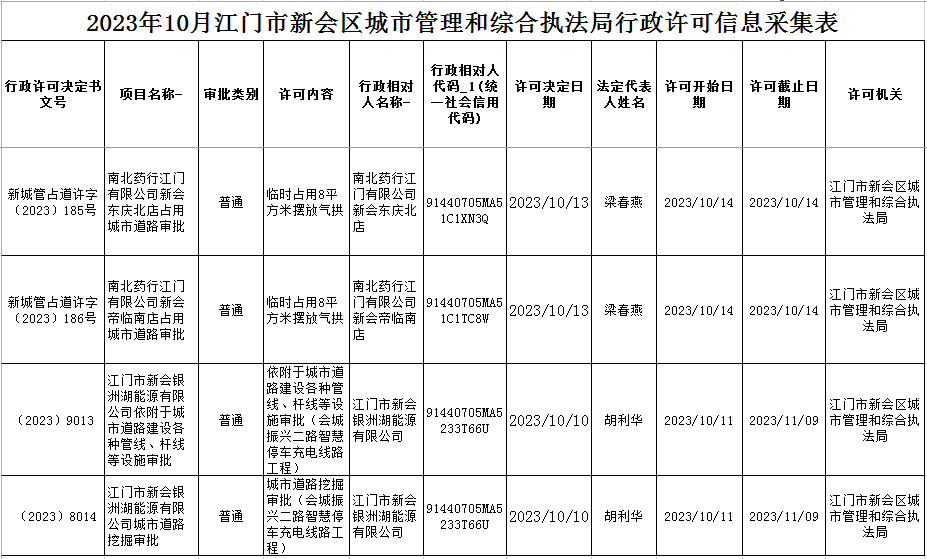 10.13江门市燕雨直播 城市管理和综合执法局行政许可信息.xls