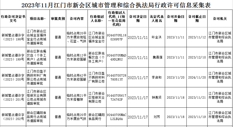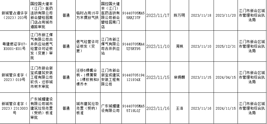 11.17江门市燕雨直播 城市管理和综合执法局行政许可信息