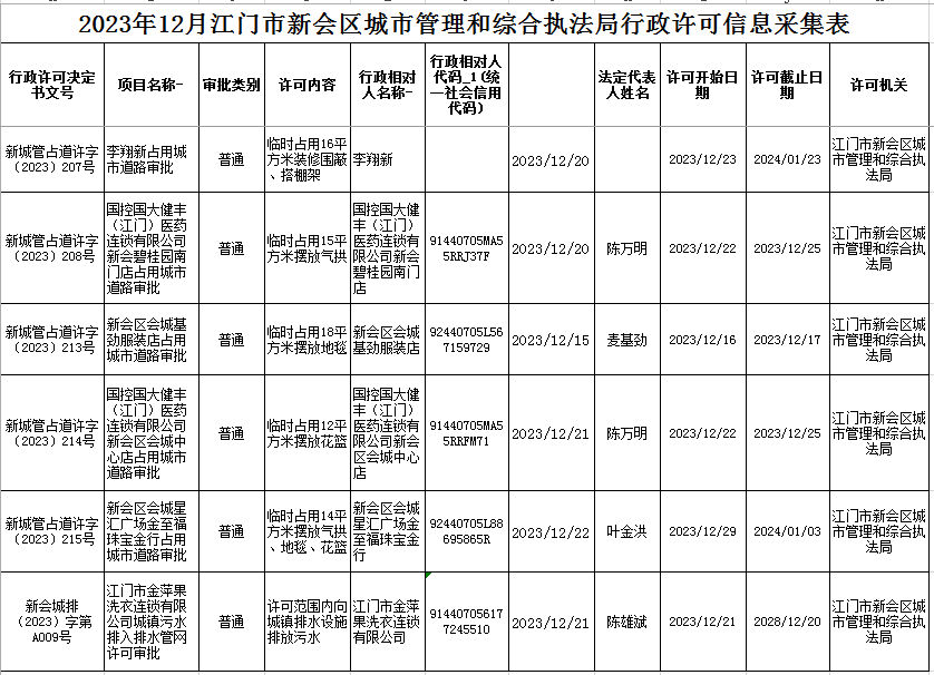 2023.12.22江门市燕雨直播 城市管理和综合执法局行政许可信息.xls