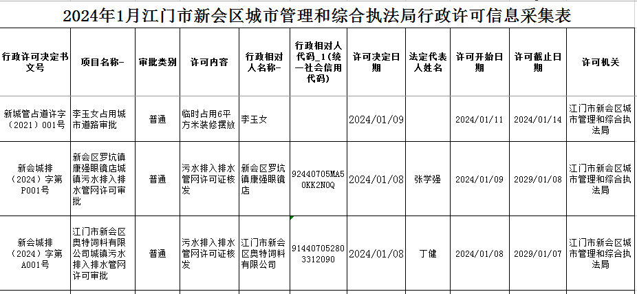 2024.1.12江门市燕雨直播 城市管理和综合执法局行政许可信息.xls