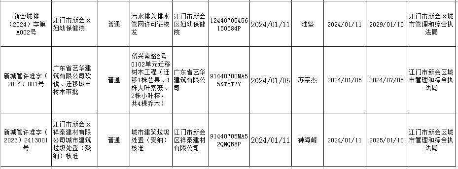 2024.1.12江门市燕雨直播 城市管理和综合执法局行政许可信息