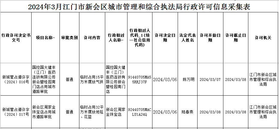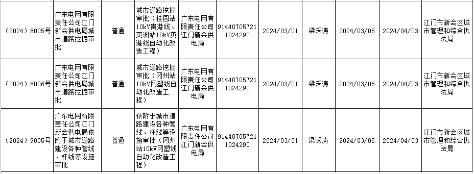 2024年3月8日江门市燕雨直播 城市管理和综合执法局行政许可信息