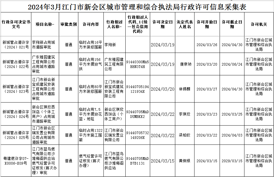 2024年3月22日江门市燕雨直播 城市管理和综合执法局行政许可信息