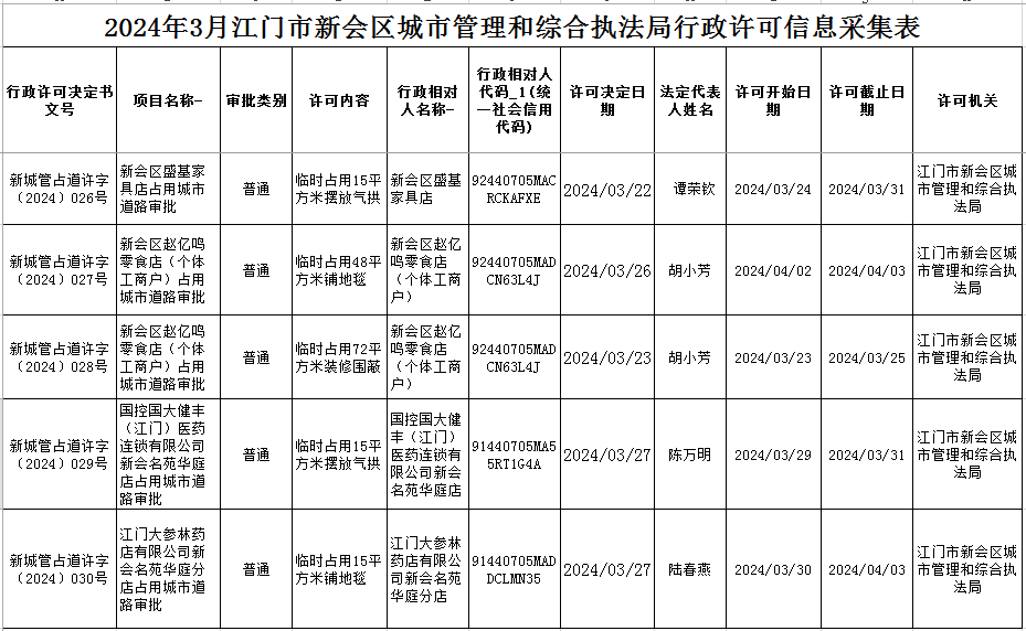 2024年3月29日江门市燕雨直播 城市管理和综合执法局行政许可信息