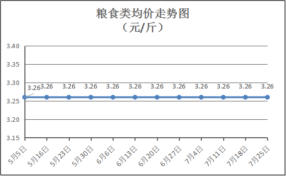 粮食类价格保持平稳。本周所监测的6种粮食商品均价为3.26元/斤,环比( 与上周比,下同)持平。其中:晚籼米、珍珠米、丝苗米零售均价分别为每斤3.30元、3.40元、3.75元,环比持平、持平、持平。