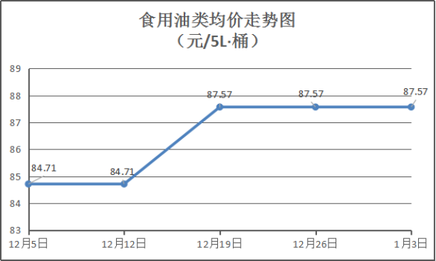 食用油类商品价格基本平稳。本周所监测的9种食用油(5L装)商品均价为87.57元/桶,环比均持平。其中:金龙鱼花生油、大豆油、金龙调和油5L装零售均价分别为每桶115元、65元、74元,环比与上周均持平。
