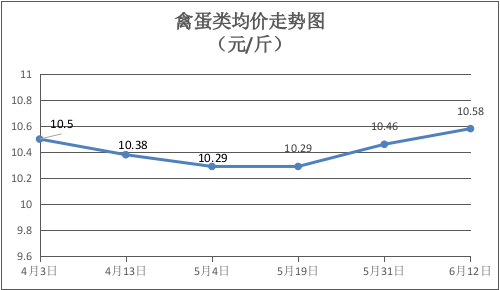 禽蛋类商品价格小幅上涨。本期所监测的6种禽蛋类商品均价为10.58元/斤,环比上涨1.15%。其中:鸡肉、鸭肉、红壳鸡蛋、白壳鸡蛋零售均价分别为每斤16.00元、16.50元、7.00元、7.00元,环比分别上涨3.23%、上涨6.45%、下降6.67%、下降3.45%。