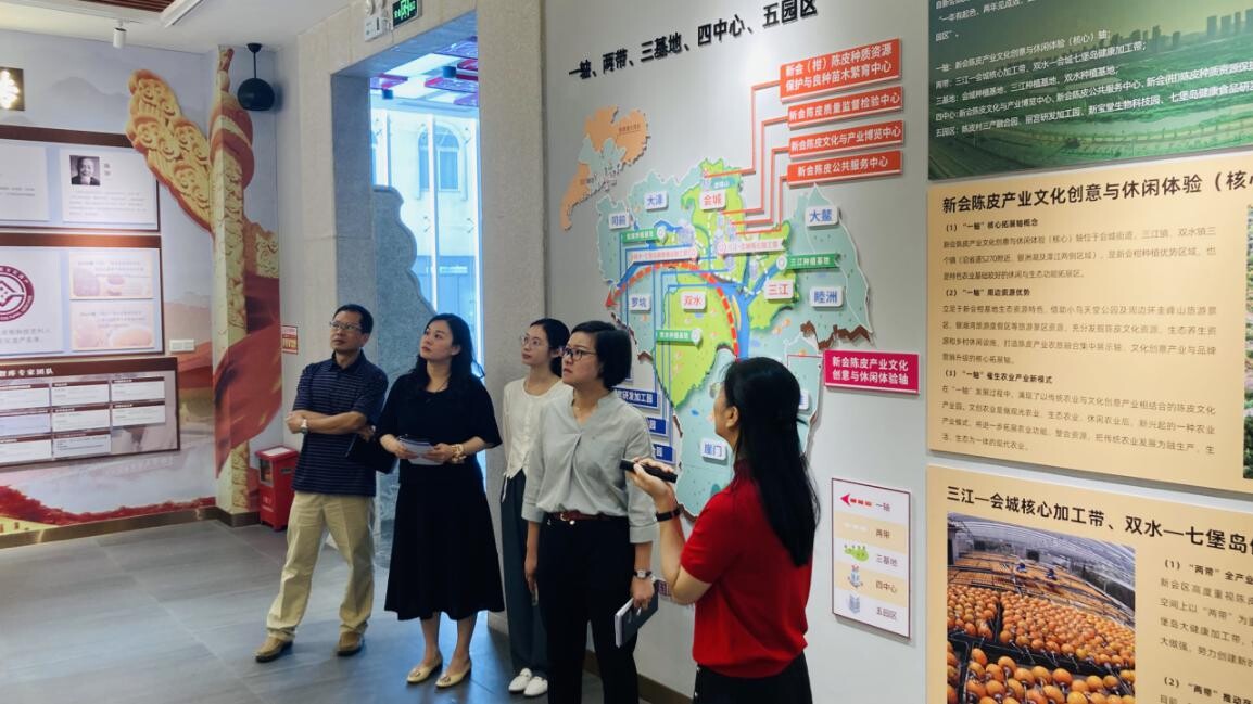在新会陈皮国家现代农业产业园调研中,调研组认真听取新会陈皮产业搭建试验示范、大数据管理、人才支撑、高效服务等介绍,并观摩了陈皮产业服务平台从种植到销售一网数据管理运作模式,对陈皮产出实行全流程监管和数字化,为种植户诚信种植、商家销诚信经营、获取信用融资等提供数据支撑。交谈中,调研组对产业园提出了紧扣新会陈皮特色,探索更多信用+陈皮的应用场景,推动传统产业转型升级的希望和建议。
