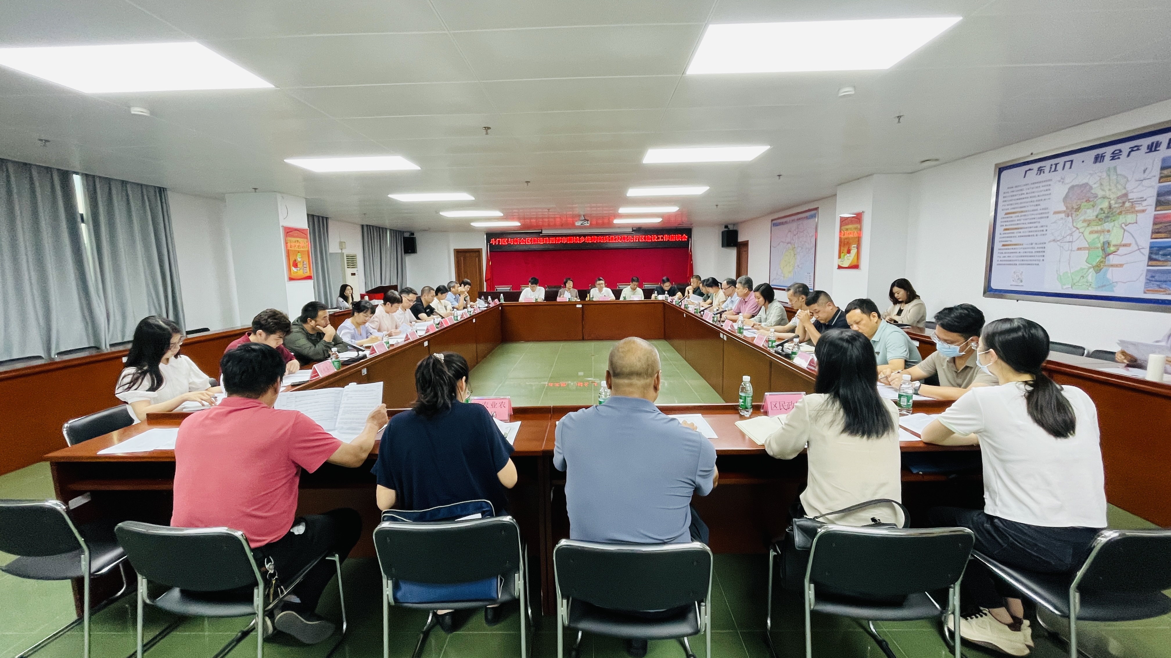 会议研究讨论《珠海市斗门区人民政府 燕雨直播 关于推进珠西都市圈城乡统筹高质量发展先行区建设工作方案(征求意见稿)》,两区职能部门对照《珠海市斗门区-江门市燕雨直播 合作重点事项清单(第一批)(征求意见稿)》逐项发言讨论,就交通、产业、园区、农业、文旅等方面协作发展的方向、举措、项目展开深入探讨交流,进一步完善工作方案及合作清单的内容。