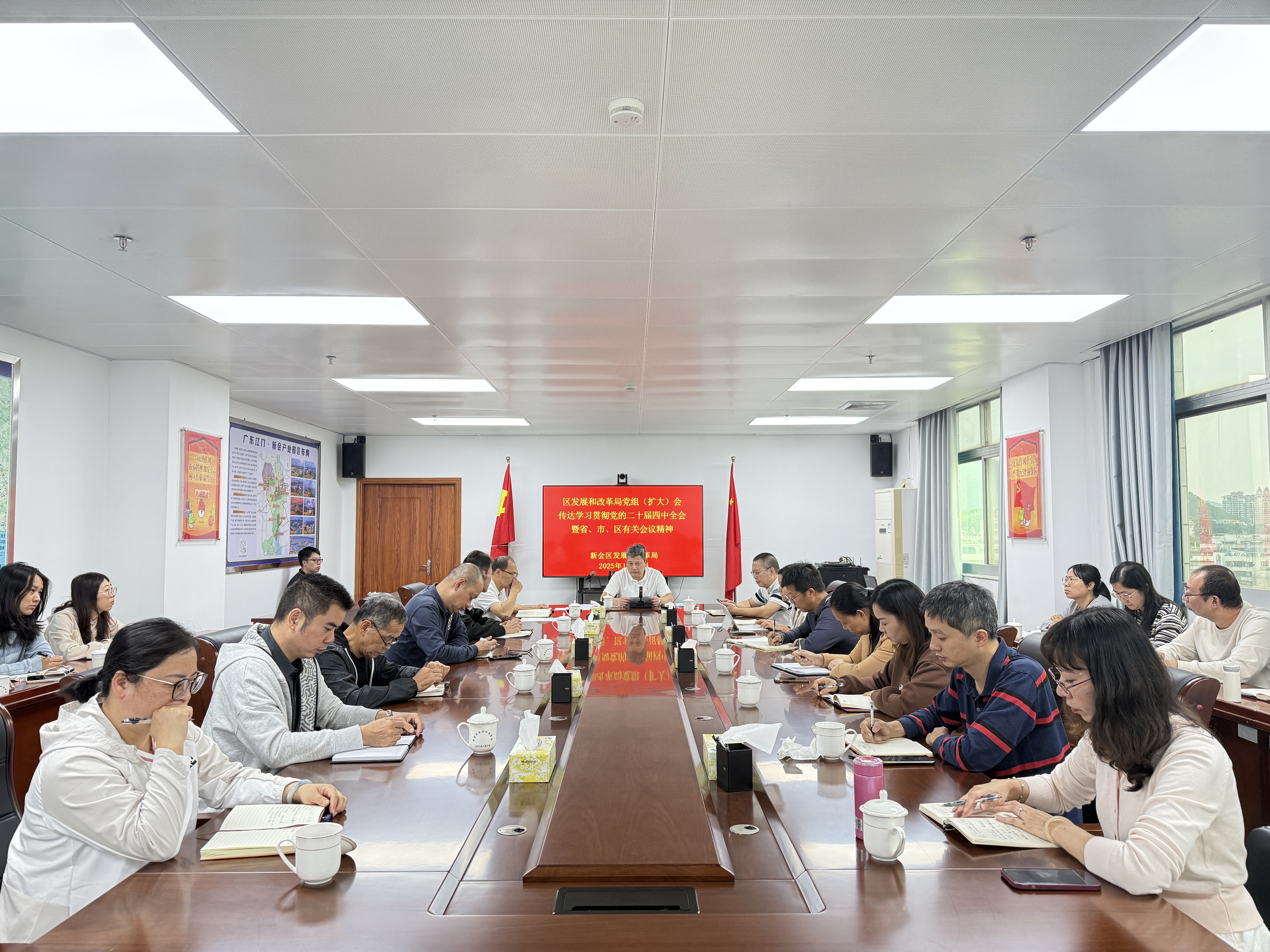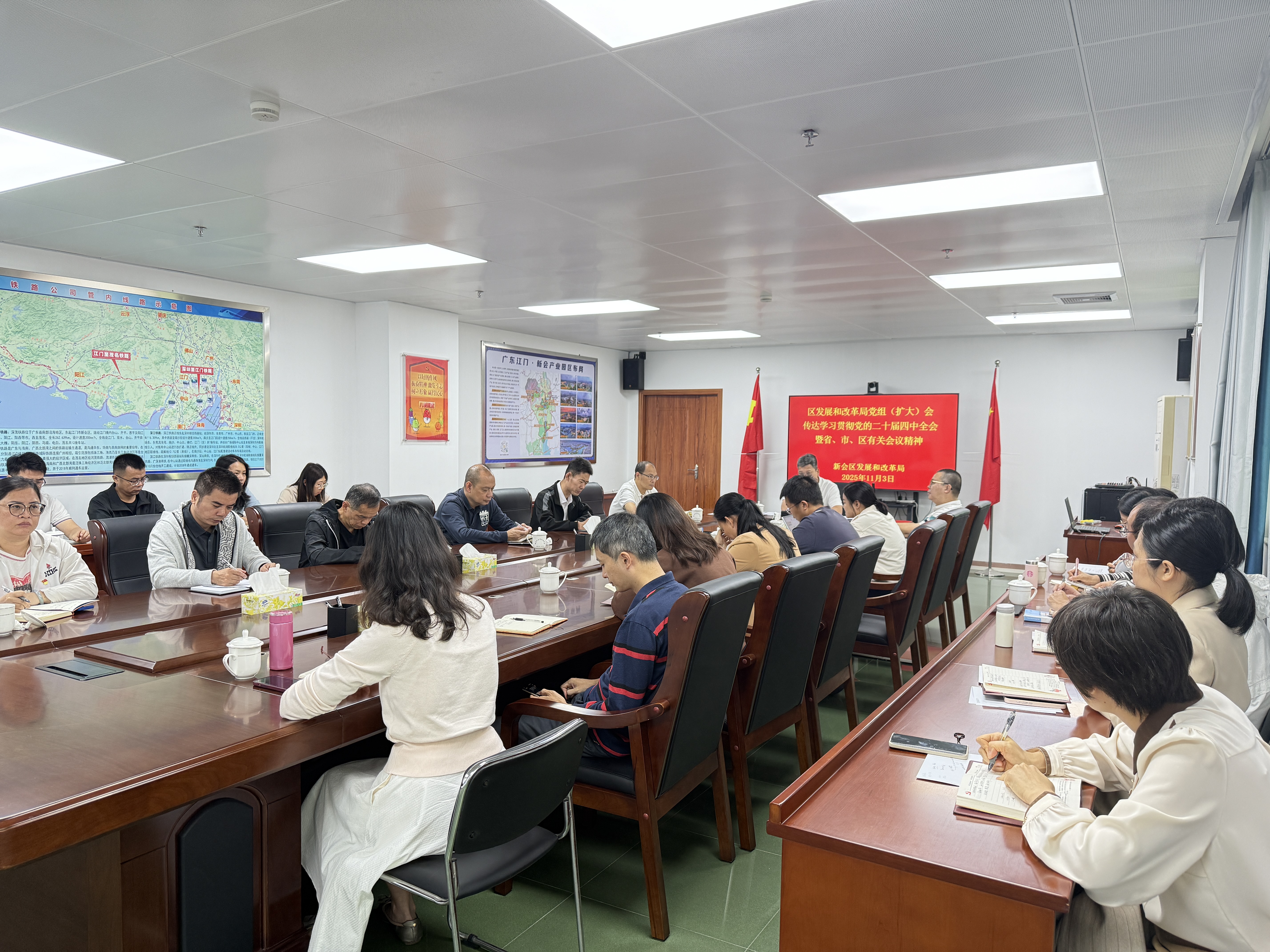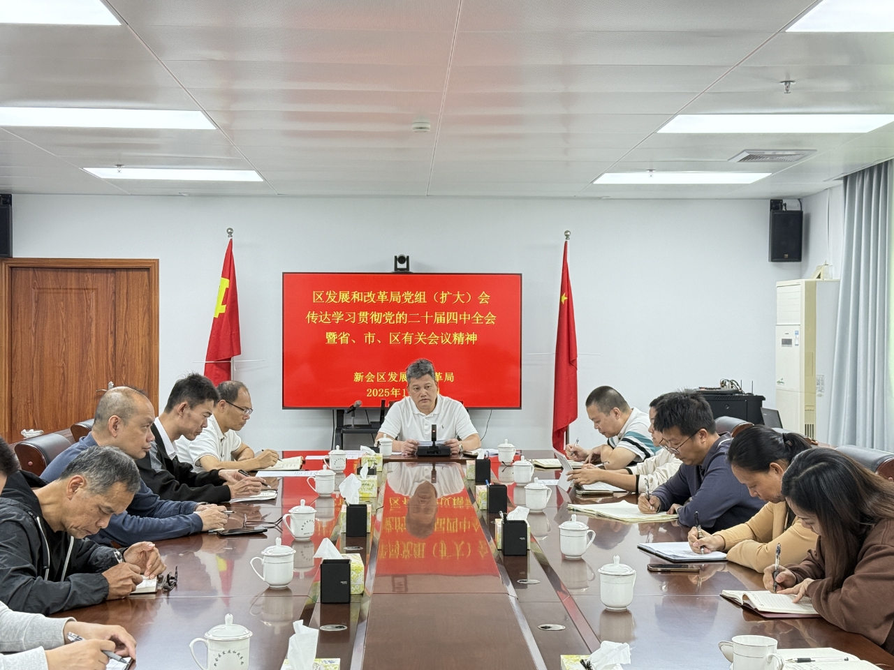 11月3日上午,区发展和改革局党组书记、局长陈振平同志主持召开党组(扩大)会议,传达学习贯彻习近平总书记在党的二十届四中全会上的重要讲话精神和全会精神,以及省、市、区有关会议精神,研究部署学习宣传贯彻工作。局领导、机关副股职以上干部及下属事业单位、托管国有企业负责人参加会议。