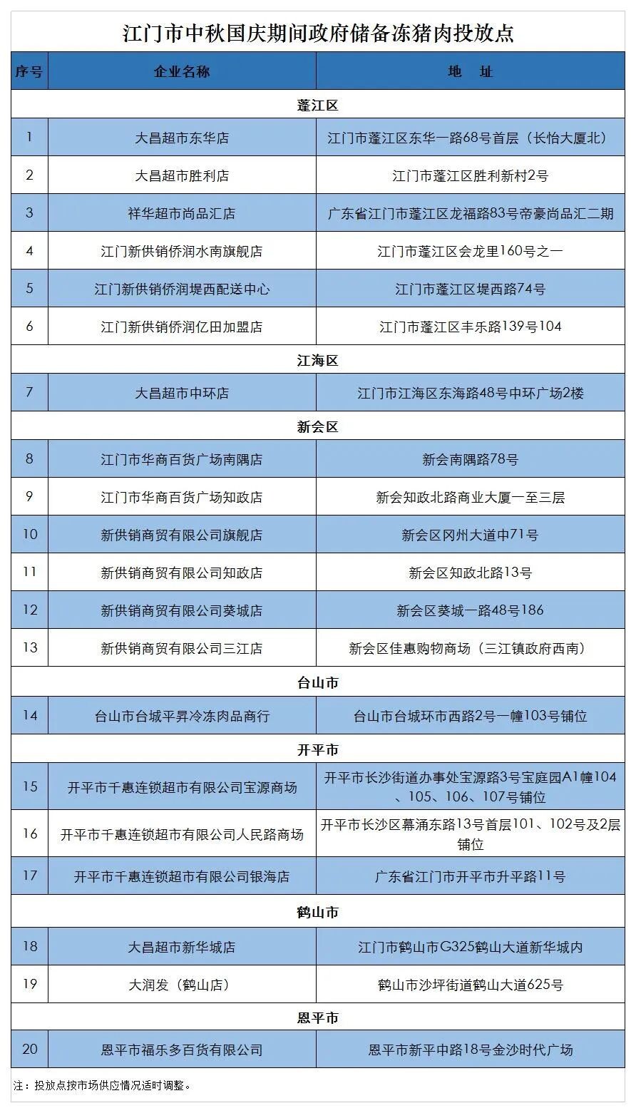 附件:江门市中秋国庆期间政府储备冻猪肉投放点