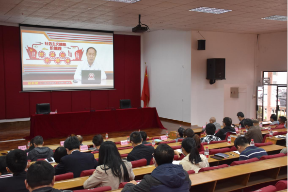会上,赵前斌教授以《心怀国之大者,奋力建设新侨都——学习贯彻江门市第十四次党代会精神》为题,紧扣市第十四次党代会精神,用通俗易懂的语言、生动鲜活的事例、图文并茂的形式,围绕新征程的全面设计、在历史中定准方位、抓大事求大发展、以冲天干劲抓落实等四个方面,对江门今后五年的奋斗目标、“1+6+3”工作部署进行了深入浅出的解读阐释,使大家更加深刻认识江门当前面临的形势和挑战,深入了解未来五年江门经济社会发展的工作部署和奋斗目标。