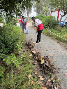 在结对村活动负责人的带领下,党员志愿者清理道路边、花坛的杂草及垃圾。各人分工合作,活动开展顺利,村里的生活环境得到了提升。