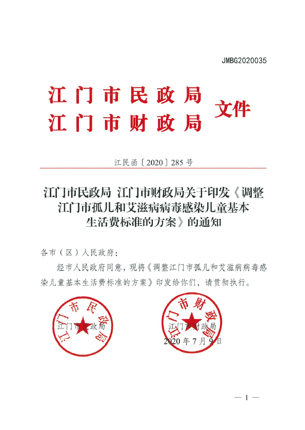 关于调整我区孤儿和艾滋病病毒感染儿童基本生活费的通知