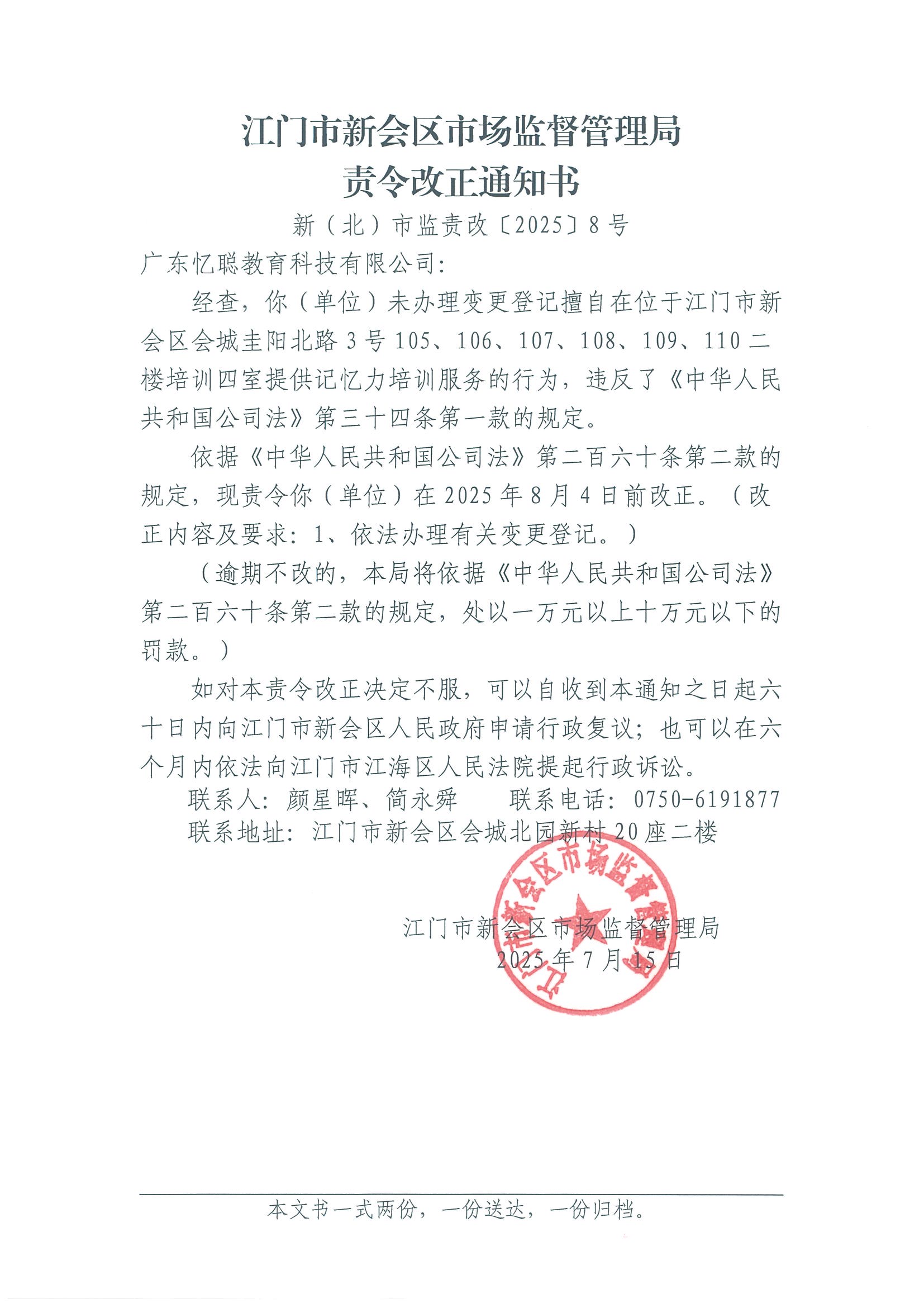 江门市燕雨直播 市场监督管理局责令改正通知书(广东忆聪教育科技有限公司).jpg