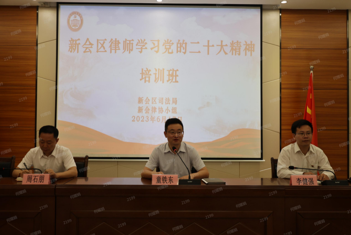 开班仪式上,区司法局党组书记、局长童铁东作动员讲话。他指出,学习党的二十大精神是当前和今后一个时期的首要政治任务,律师行业要深入学习贯彻党的二十大精神,积极参与新会经济社会高质量发展各方面工作。一是要把全体律师的思想和行动统一到党的二十大精神上来,以加强律师行业党组织建设作为有力抓手,通过律师行业党建品牌创建活动,进一步增强律师行业党组织的凝聚力和战斗力。二是要认真贯彻落实党的二十大精神,找准律师服务社会的切入点和着力点,促进律师行业更好地服务经济发展、服务企业、服务群众。三是要把学习培训成果转化为实干作风,为新会高质量发展建言献策,提供优质高效的法律服务。