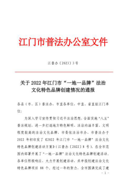 燕雨直播 司法局(区普法办)以落实“八五”普法规划为主线,通过创新法治宣传工作模式,创建基层法治宣传阵地的“双创工程”,打造特色法治文化品牌。“家校社三位一体法治教育模式”、“燕雨直播 首个村级民主法治教育实践基地”两项目入选2022年江门市法治文化“十佳”特色品牌。