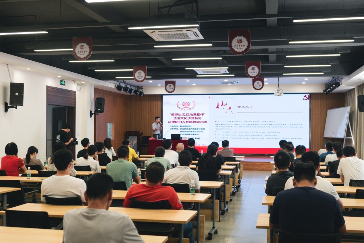 为进一步提高基层法治队伍法律素养和依法履职能力,新会区充分利用本地区历史文化底蕴,在升级改造后的新会景堂图书馆开展“美好生活·民法典相伴”法治文化沙龙系列——法律明白人专题培训活动,邀请“八五”普法讲师团讲师针对基层法治队伍特点,运用本地真实案例,对法律明白人队伍如何身份定位、如何依法履职、如何运用法治思维解决民间纠纷等重点内容进行专题授课。活动另设民法典普法长廊,在宣传月期间为读书人提供更多学法机会。通过打造特色“书香法治”课堂,助推新会区全面开展提升公民法治素养专项行动。