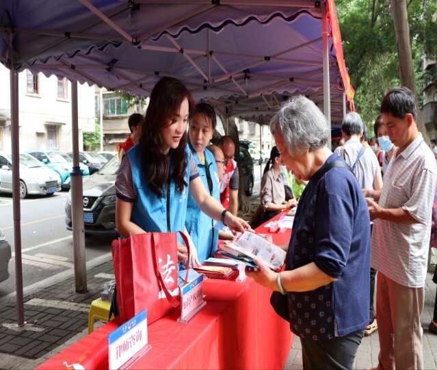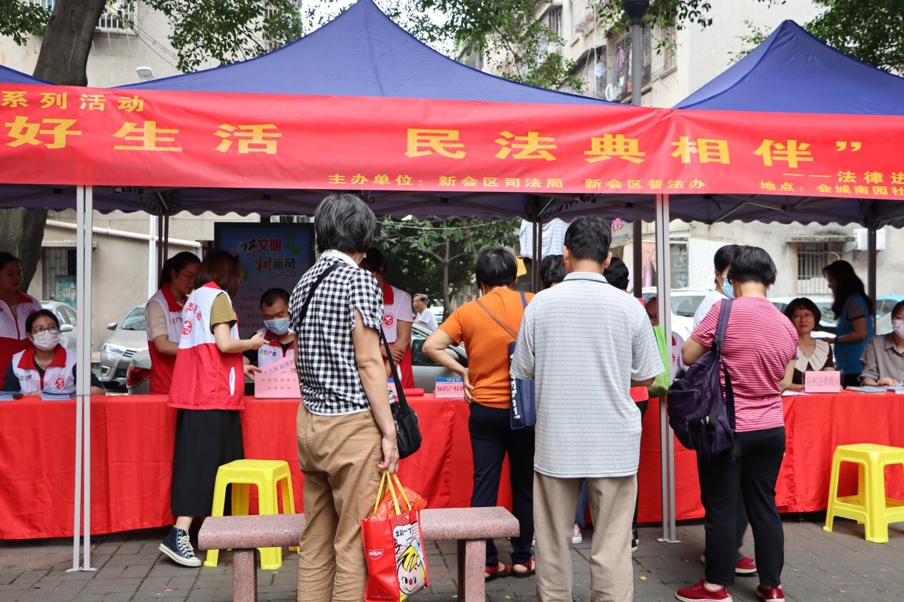 为提升社区居民学法用法意识,区普法办、区司法局联合结对社区,开展“美好生活·民法典相伴”法律进社区专题宣传活动,除向居民开展民法典宣传外,还结合司法行政职能开展律师法律咨询、公证业务咨询、知识产权调解、公共法律服务、法律援助、行政复议咨询等,并设置宣传展架和视频展播。同时,针对社区老年居民占比大的情况,开设老年人、妇女权益保护咨询专区。期间,区普法办还向社区赠送了“法律进社区”读本,方便居民到居委会取阅。活动共接待咨询群众100多人次,派发各类宣传资料、法治小礼品300多份,市民法治获得感进一步提升。
