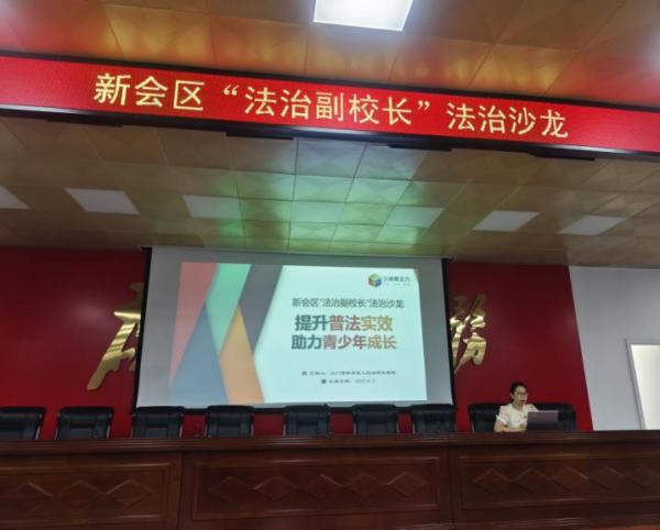 各政法部门发挥专业水平,紧靠职能,同向发力,共建未成年人司法保护安全网。区人民法院以“司法护苗基地”为辐射点,在多间学校设立“司法护苗驿站”并开通“法官信箱”,筑起法官师生连心桥。区人民检察院联合教育部门开展“检护民生”守护侨乡校园安全工作专项行动,重点关注乡村学校安全管理责任落实情况,为留守儿童、寄宿生开展宣传教育。新会公安分局组织法治副校长、“护苗女警团”到各校开展交通安全、防溺水、防性侵、消防安全等专题教育,为未成年人筑起安全防火墙。区司法局发挥普法办统筹抓总职能,结合法治“city walk”“家校社三位一体法治教育模式”等法治品牌延伸建设,组织、指导开展各类青少年普法宣传活动,进一步丰富学生学法体验。
