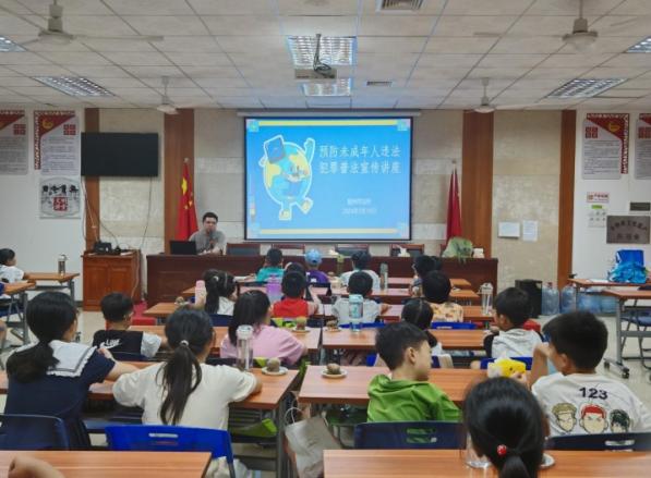 紧抓暑假重要节点,全方位加强未成年人法治素质培养,实现“孩子放假,宣传教育不放假”。注重把法治教育与爱国主义教育紧密相融,区司法局联动区总工会,开展关爱未成年人暑期亲子观影活动。区退役军人事务局发挥“老兵宣讲”活动平台开展老兵学生互动,厚植未成年人社会主义法治精神。区委宣传部充分发挥新时代文明实践中心宣传活动功能,联动区普法办、区人民法院等多家部门单位开展“文明润校园”助力“百千万工程”主题系列活动,沉浸式模拟法庭让学生切身感受法律威严。区妇联线上+线下共同发力,通过“家庭教育云课堂”和假期安全守护系列公益课堂,开展防溺水、防诈骗、防毒禁毒授课,筑牢未成年人法治安全底线。为构建城区、乡镇同频共振宣传态势,7月区普法办印发《关于在暑假期间开展未成年人保护基层宣传教育月活动的通知》,各镇街在“全领域旅游普法圈”、法治“city walk”等法治文化品牌加持下,广泛开展未成年人保护主题活动。睦洲镇、古井镇、崖门镇以法治讲座、法治心理游戏、亲子家庭教育讲座等形式开展暑期托管班、法治夏令营活动,重点宣传未成年人保护法、预防未成年人犯罪法等法律内容,同时进行心理教育指引、假期安全指引等知识宣讲,实现宣传教育一步到位。
