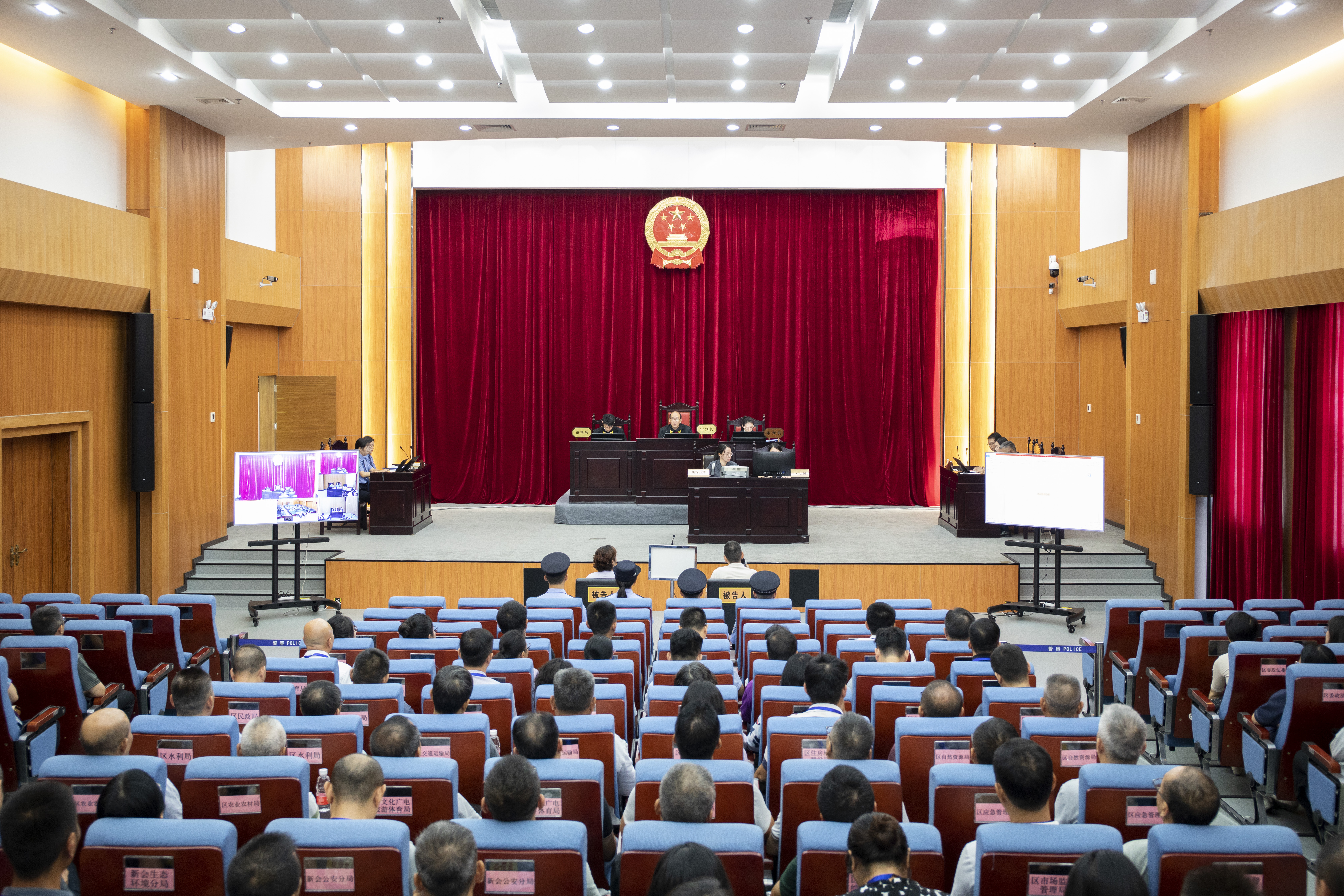 为切实增强领导干部依法行政意识,提升依法履职能力,筑牢拒腐防变思想防线。近日,新会区普法办联合新会区人民法院组织开展2024年领导干部旁听案件庭审活动,一场“沉浸式”警示教育课在区人民法院第一审判庭“生动开课”。各镇(街、区)、区普法领导小组成员单位副科级以上代表约100人参与旁听活动。