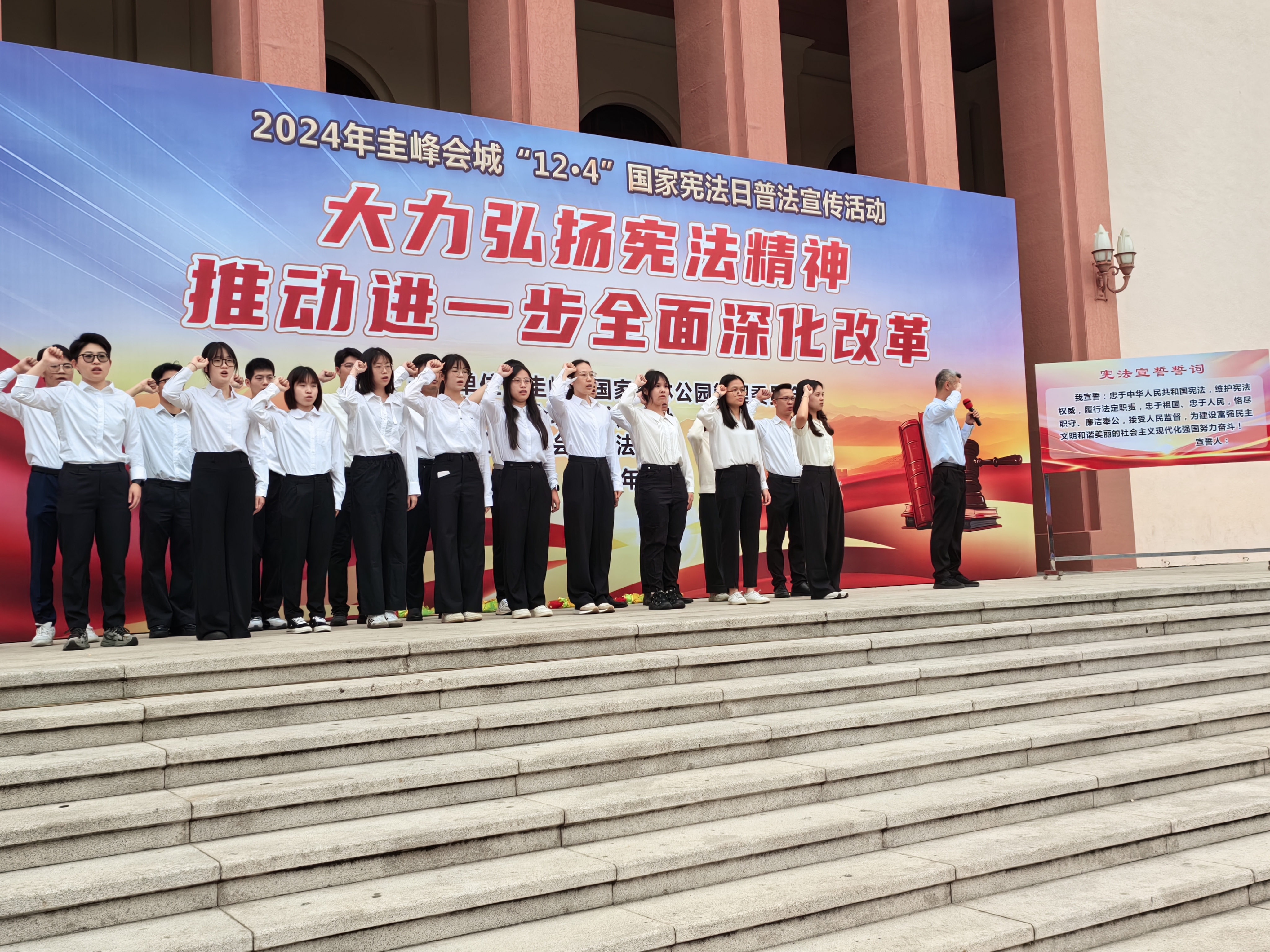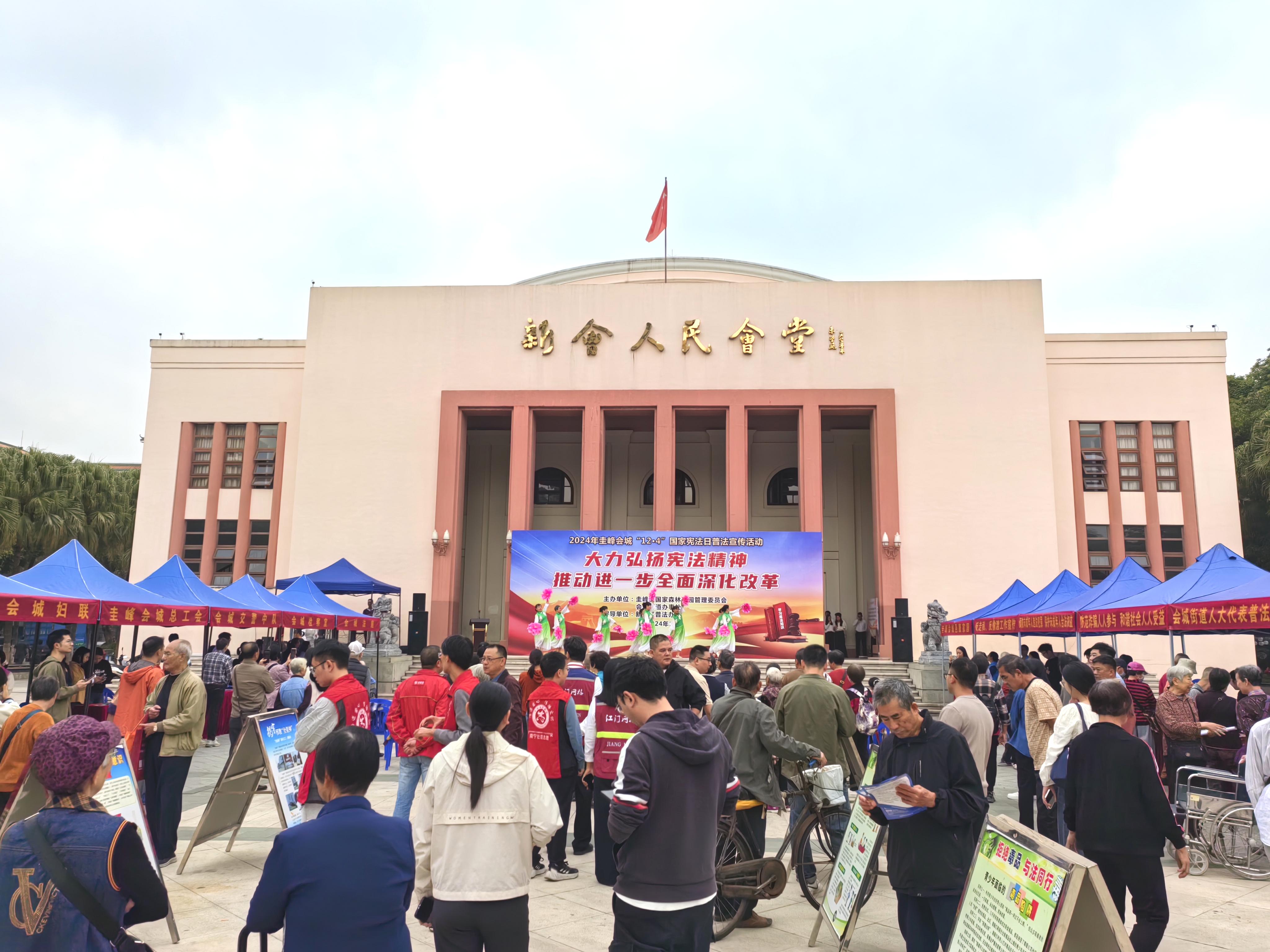为加强群众宪法意识,区普法办巧妙串联圭峰法治广场、新会人民会堂、会城茶坑村、新会圭峰小学以街头随访的形式开展“12·4”国家宪法日“快闪”有奖法治问答活动,以新鲜生动的形式丰富群众学宪体验;圭峰会城发挥会城街道司、法、检力量,在人民会堂开展国家宪法日宣传户外活动,以宪法知识问答、法治咨询摊位、法治打卡位等多彩元素为群众送上普法大餐。