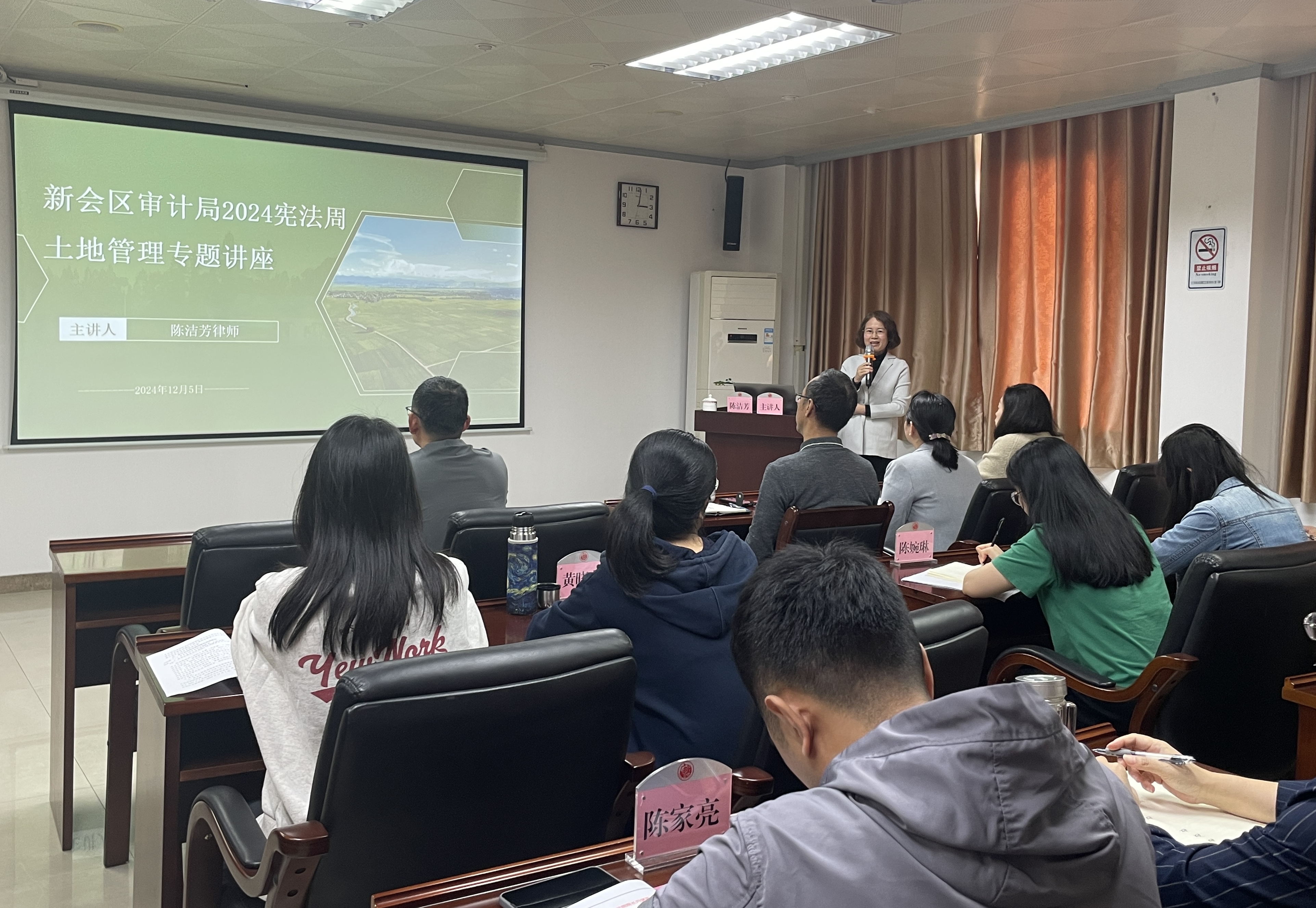 为持续提高依法履职水平,区政数局、市海洋综合执法支队新会大队、区审计局等部门单位积极加强内部学法,开展党员内部学习,邀请法律顾问专题授课,进一步提高队伍法治素养和依法办事能力;区检察院和圭峰会城因时制宜,分别举办宪法宣誓活动,以庄严的仪式增强公职人员法治担当和工作使命。