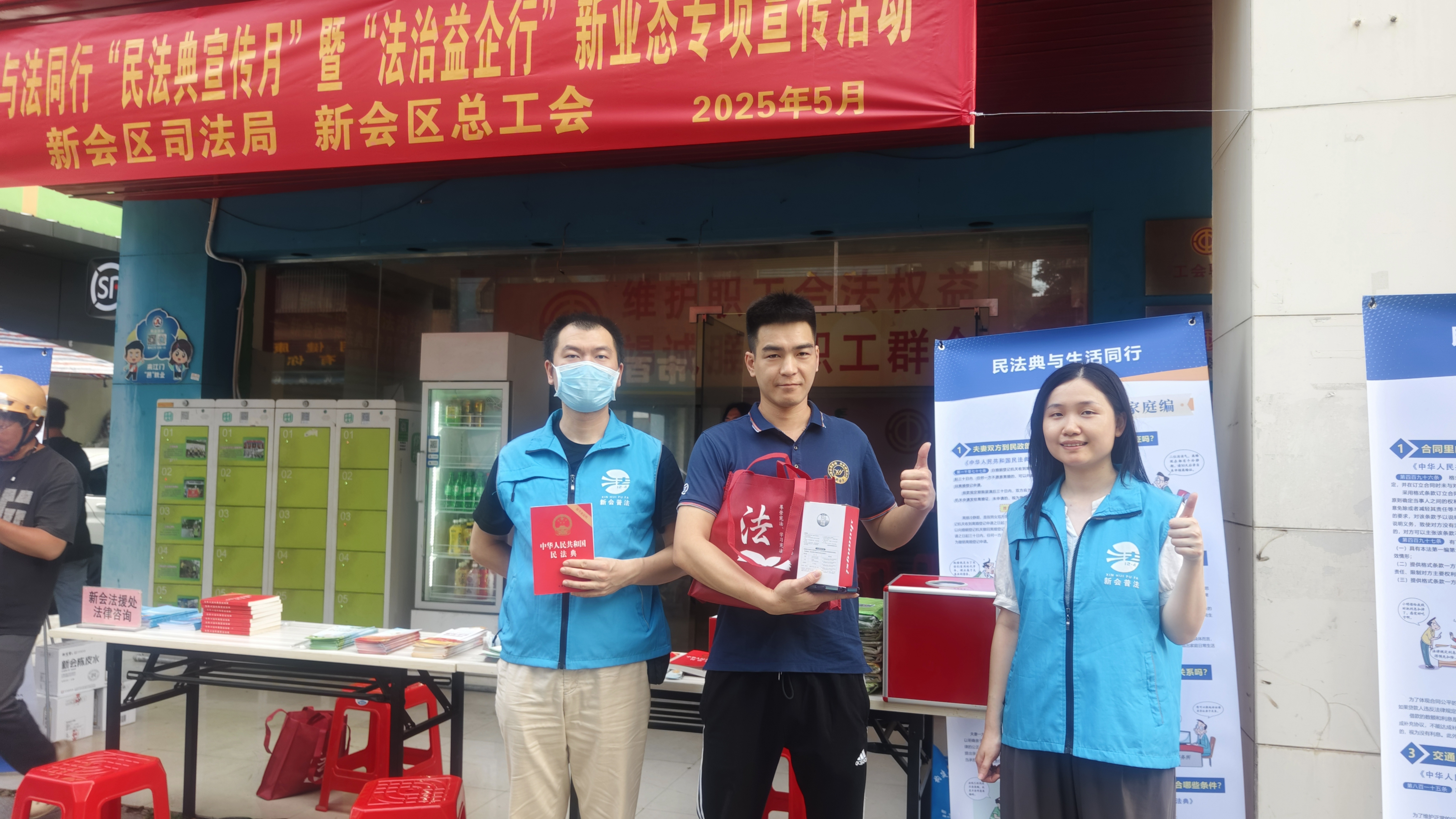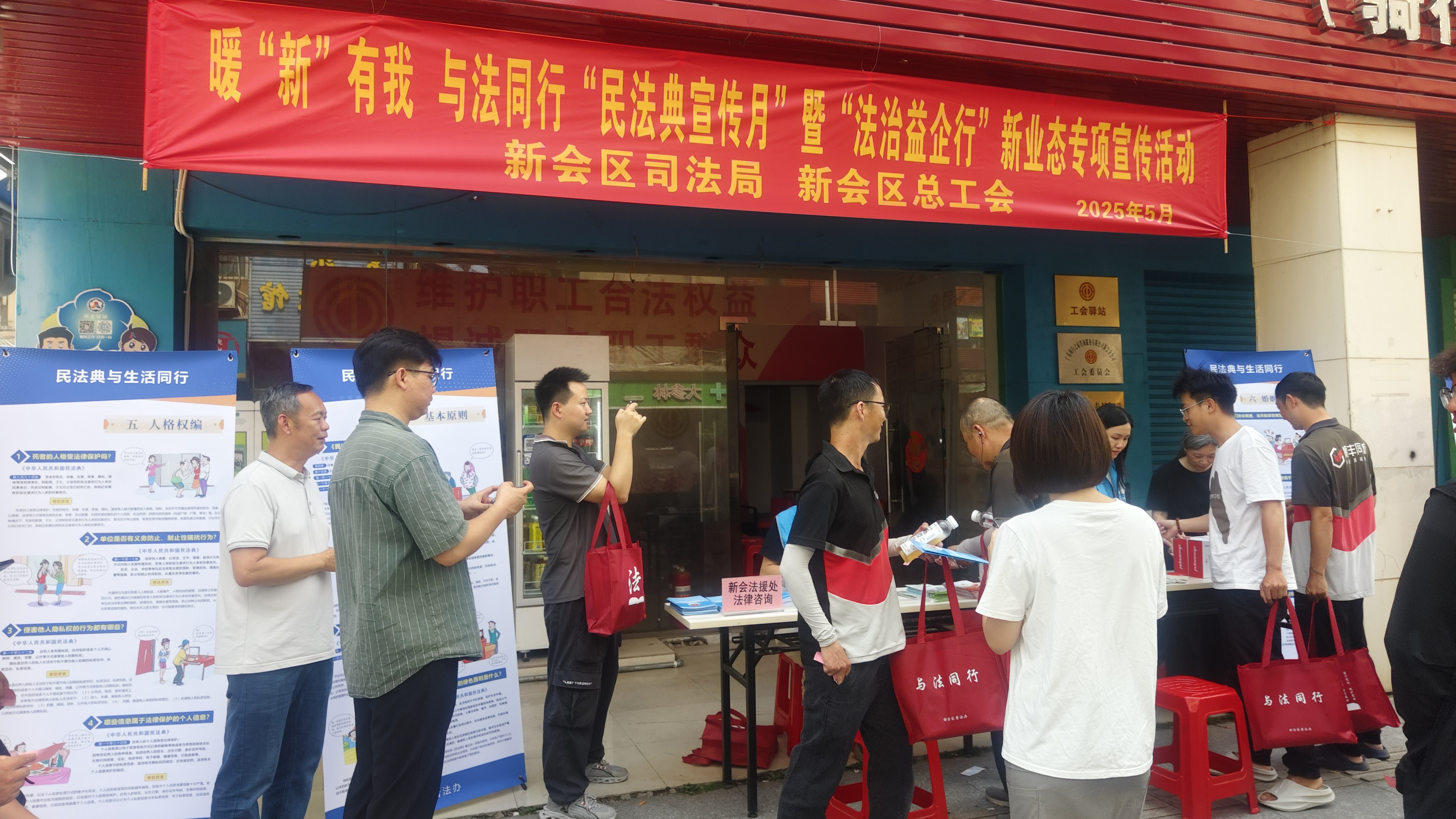茶话会结束后,法律知识有奖问答活动将现场气氛推向高潮。活动围绕与新业态新就业群体生活、工作息息相关的法律知识设置题目,涵盖劳动者权益保护、婚姻家庭、财产继承等民法典相关知识,全是干货满满的“生活指南”。现场气氛热烈,外卖骑手、快递小哥踊跃参与。有的骑手凭借丰富的法律知识,接连答对两道题,喜滋滋地领取到定制的普法宣传品,笑着说:“本来只想在接单空暇来凑个热闹,没想到既能赢奖品,还学到这么多实用的法律知识,太值了!”