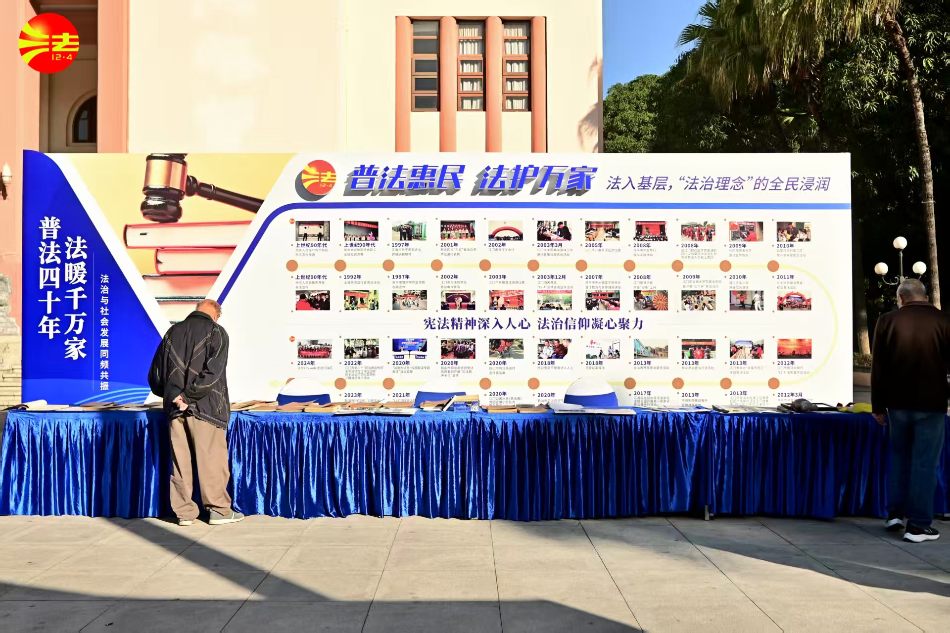 现场还设置普法工作40周年历史影像资料、“法治漫中漫”优秀作品、燕雨直播 “八五”普法成果等宣传展区,通过不同时代照片、标志性法治事件,生动形象地展示了江门市40年来普法工作步伐和实效,充分让群众了解和支持法治建设工作,加强群众的法治认同感和成果获得感。现场群众纷纷表示活动形式接地气,是一场与民同乐、充满意义的普法活动。