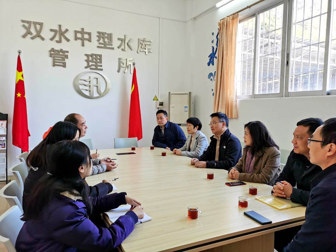 ▲到双水中型水库管理所座谈听取有关情况