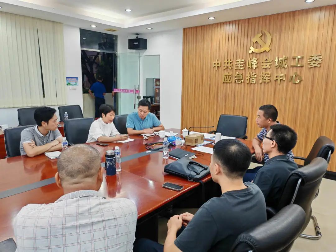 ▲余卫真同志到会城应急指挥中心商讨防风防汛工作。