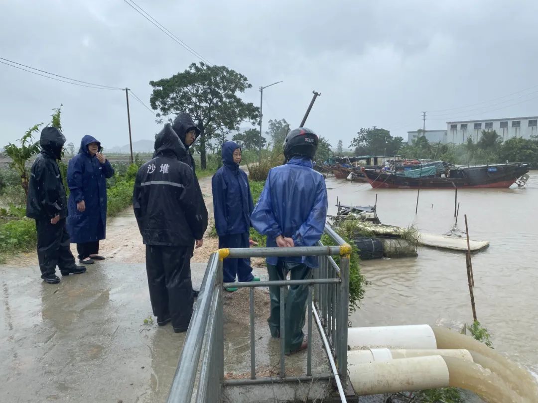 ▲局党组成员、副局长黄碧晶率队到沙堆镇检查防风防汛工作。