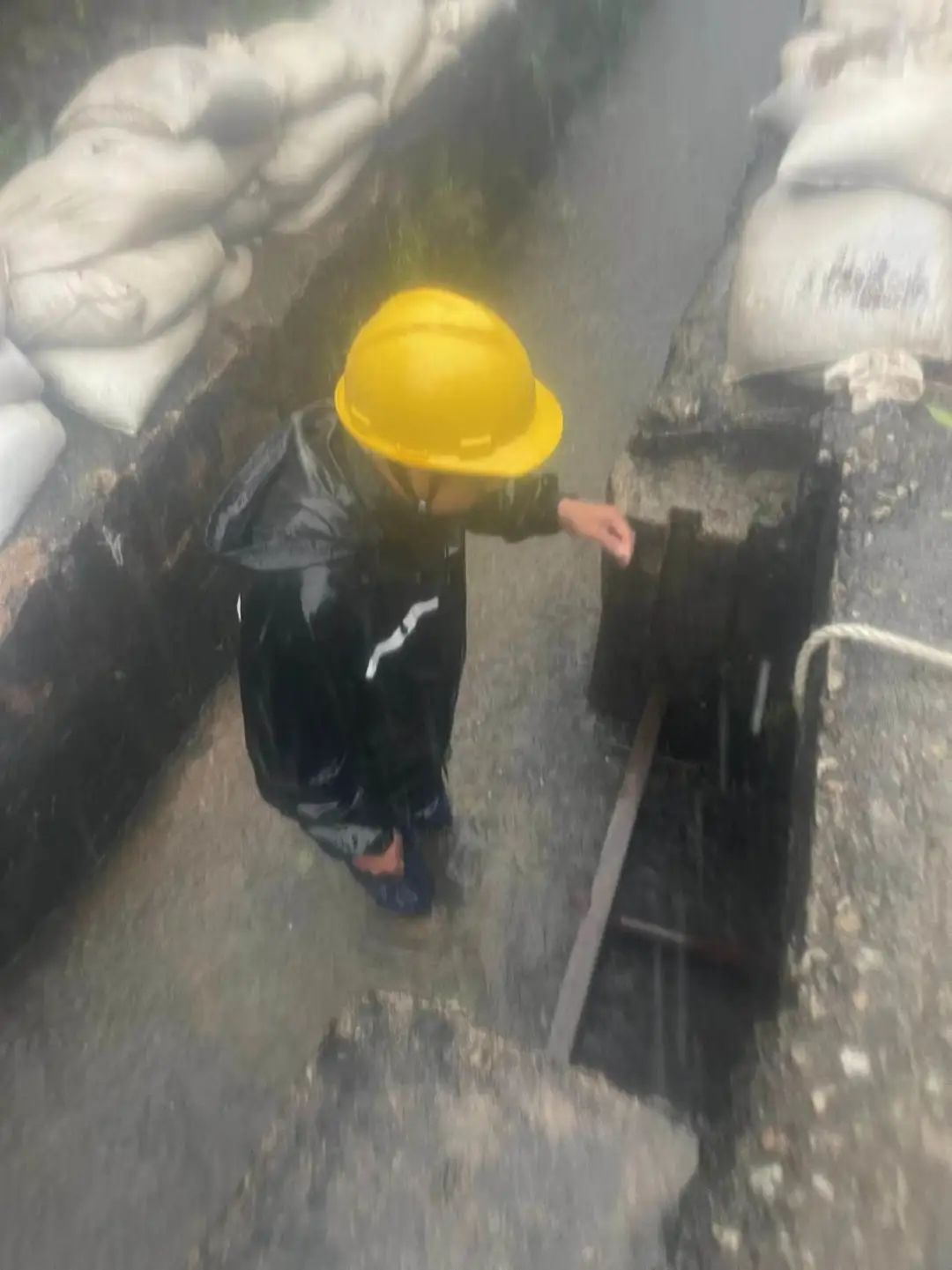 ▲冒雨检查。