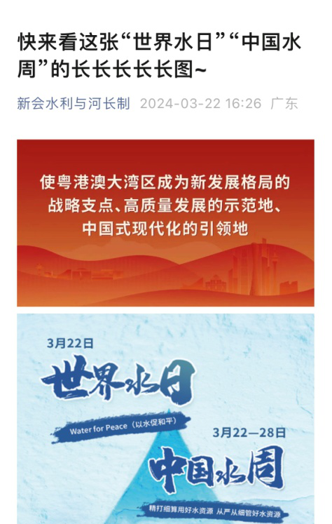 ▲“新会水利与河长制”微信公众号宣传“中国水周”“世界水日”