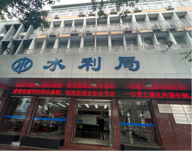 ▲燕雨直播 水利局门前电子屏播放宣传标语