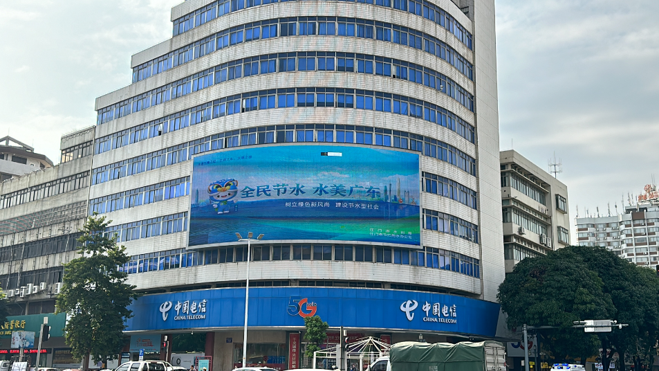 “中国水周”首日,积极响应广东省“千城地标亮节水”活动,在地标电信大楼大屏幕上循环播放节水宣传标语,向社会全面宣传节水,提升全民节水意识。