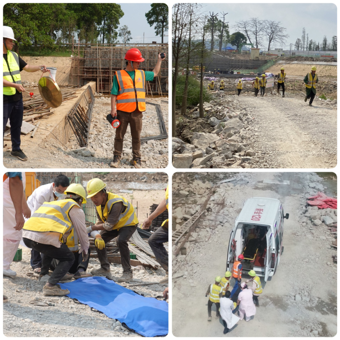 ▲模拟场景三:强降雨来袭,工程作业受阻,现场紧急疏散人员。