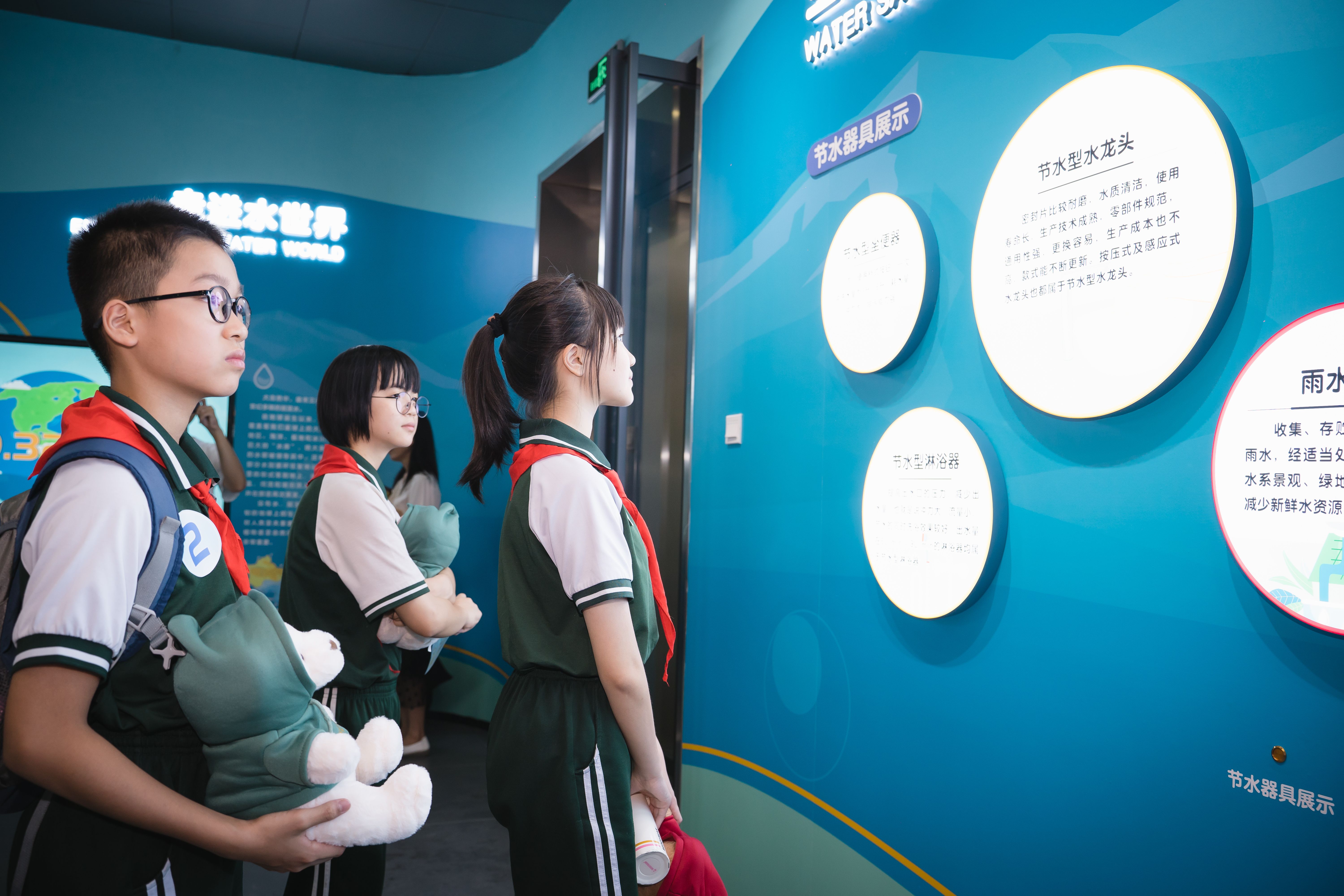 颁奖典礼后,参与活动的领导嘉宾和学生一行参观了新会东区学校的节水教育社会实践基地。在基地讲解员的引导下参观了节水展示区、节水技术体验区、节水科普教室等多个区域。通过实地参观和亲身体验,深入了解了节水技术和节水设施的应用,感受到了节水的重要性和紧迫性。在参观过程中,学生们积极参与互动,提出了许多有关节水的问题和建议,展现了高度的参与热情。